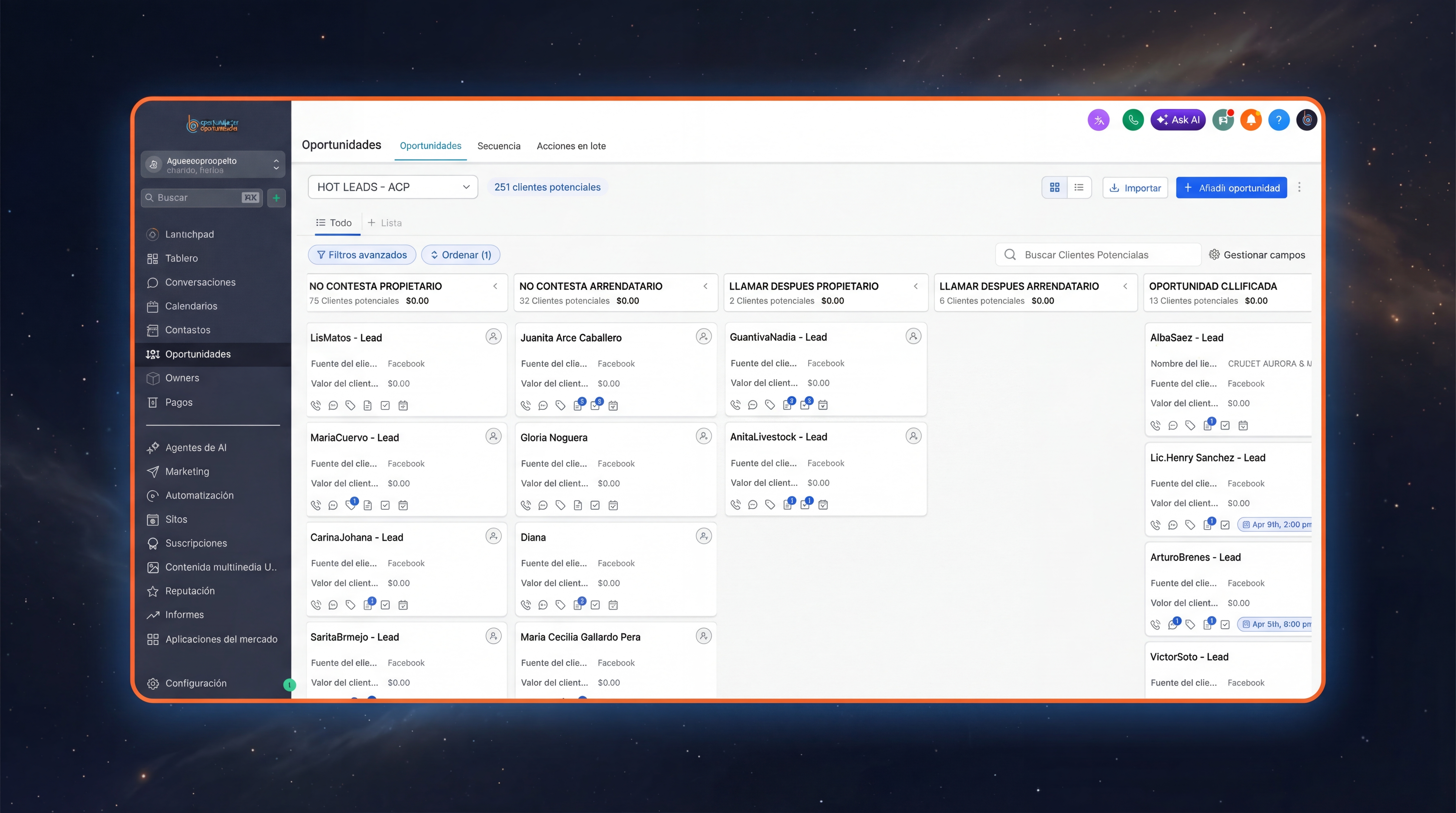 It's the only CRM that combines WhatsApp, calls, email, Facebook/Google/TikTok ads, e-commerce and AI agents in a single platform. You don't need to connect 8 different tools, everything comes integrated and ready to use.